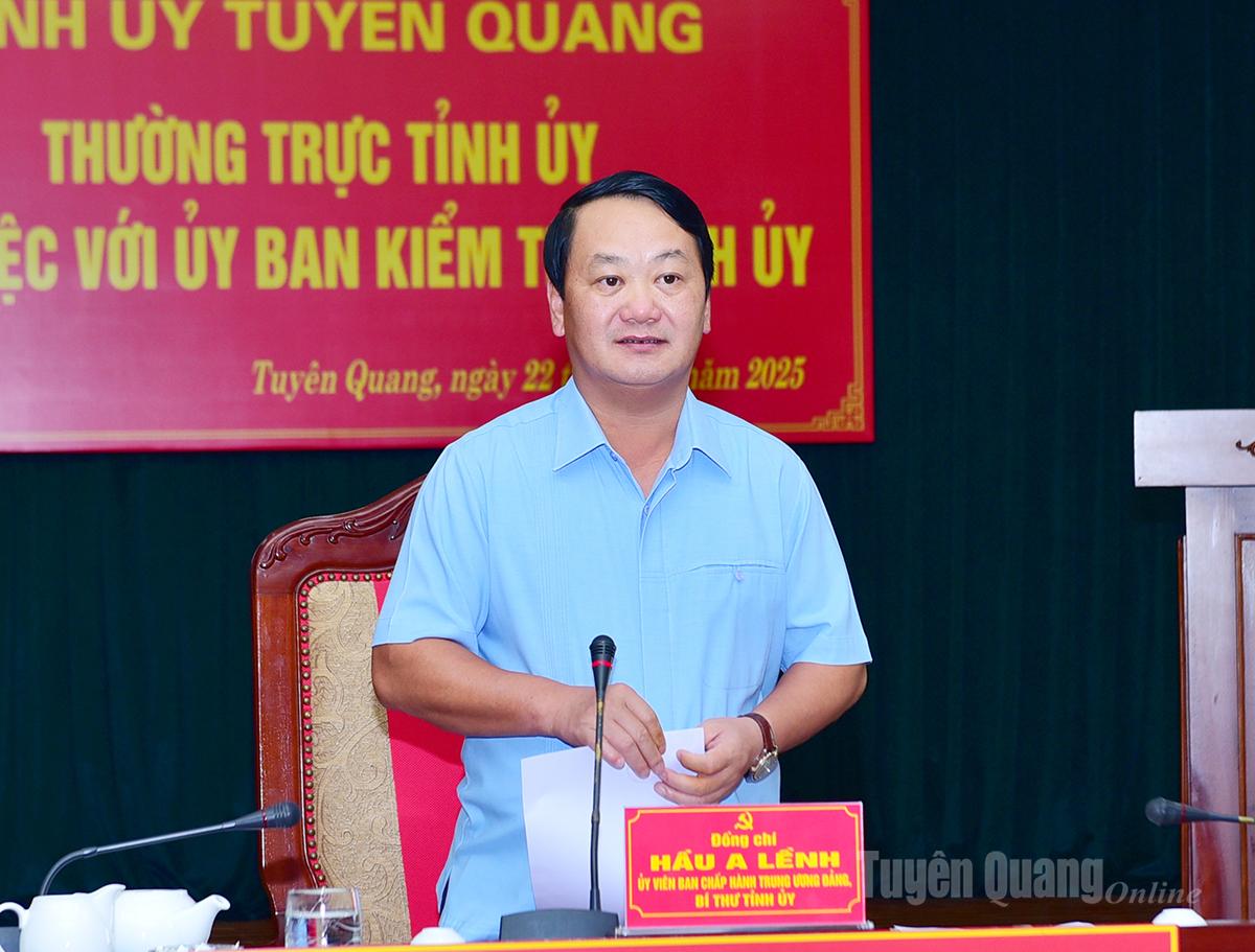 Phát biểu kết luận buổi làm việc, đồng chí Bí thư Tỉnh ủy Hầu A Lềnh ghi nhận, biểu dương những nỗ lực, kết quả đạt được của UBKT Tỉnh ủy và ngành kiểm tra Đảng các cấp trong thời gian qua, nhất là sau khi sáp nhập. Đồng chí nhấn mạnh, công tác kiểm tra, giám sát là một trong những nhiệm vụ trọng yếu, trực tiếp góp phần giữ vững kỷ cương, kỷ luật của Đảng, xây dựng Đảng bộ tỉnh trong sạch, vững mạnh.