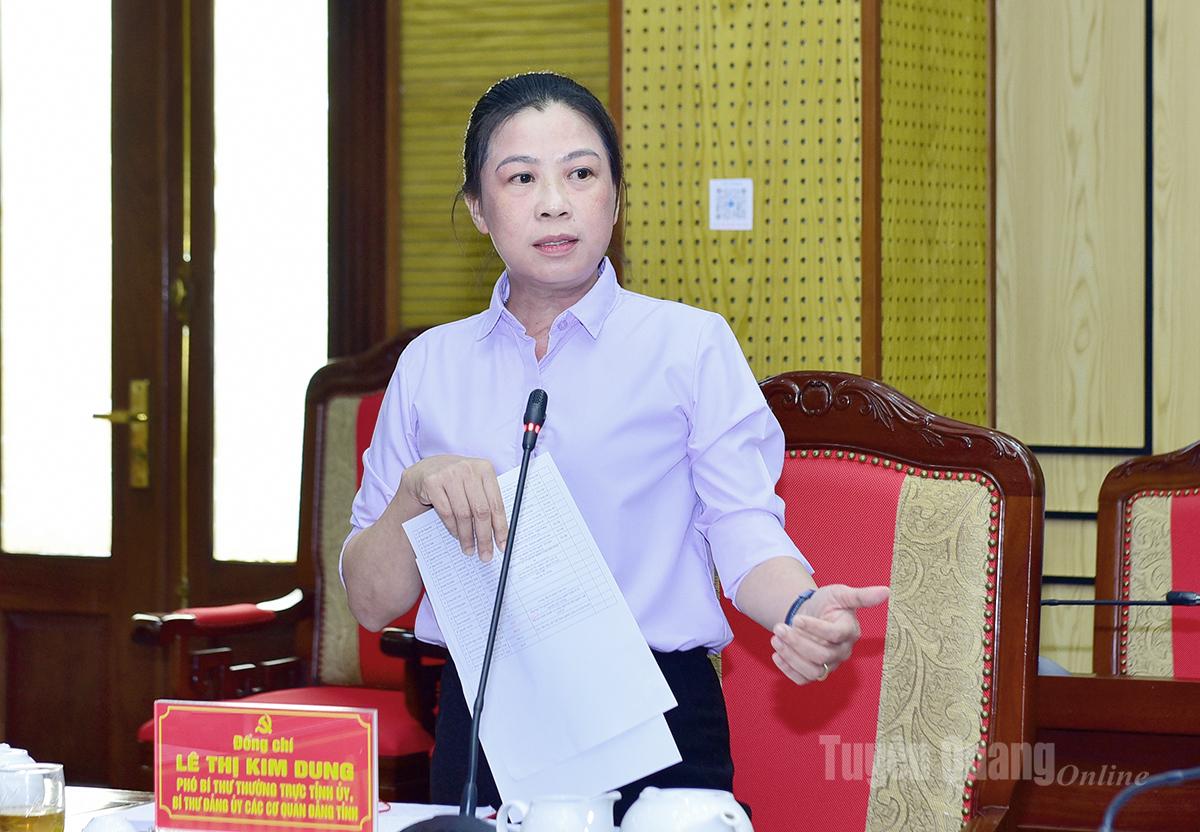 Đồng chí Phó Bí thư Thường trực Tỉnh ủy Lê Thị Kim Dung phát biểu tại buổi làm việc.