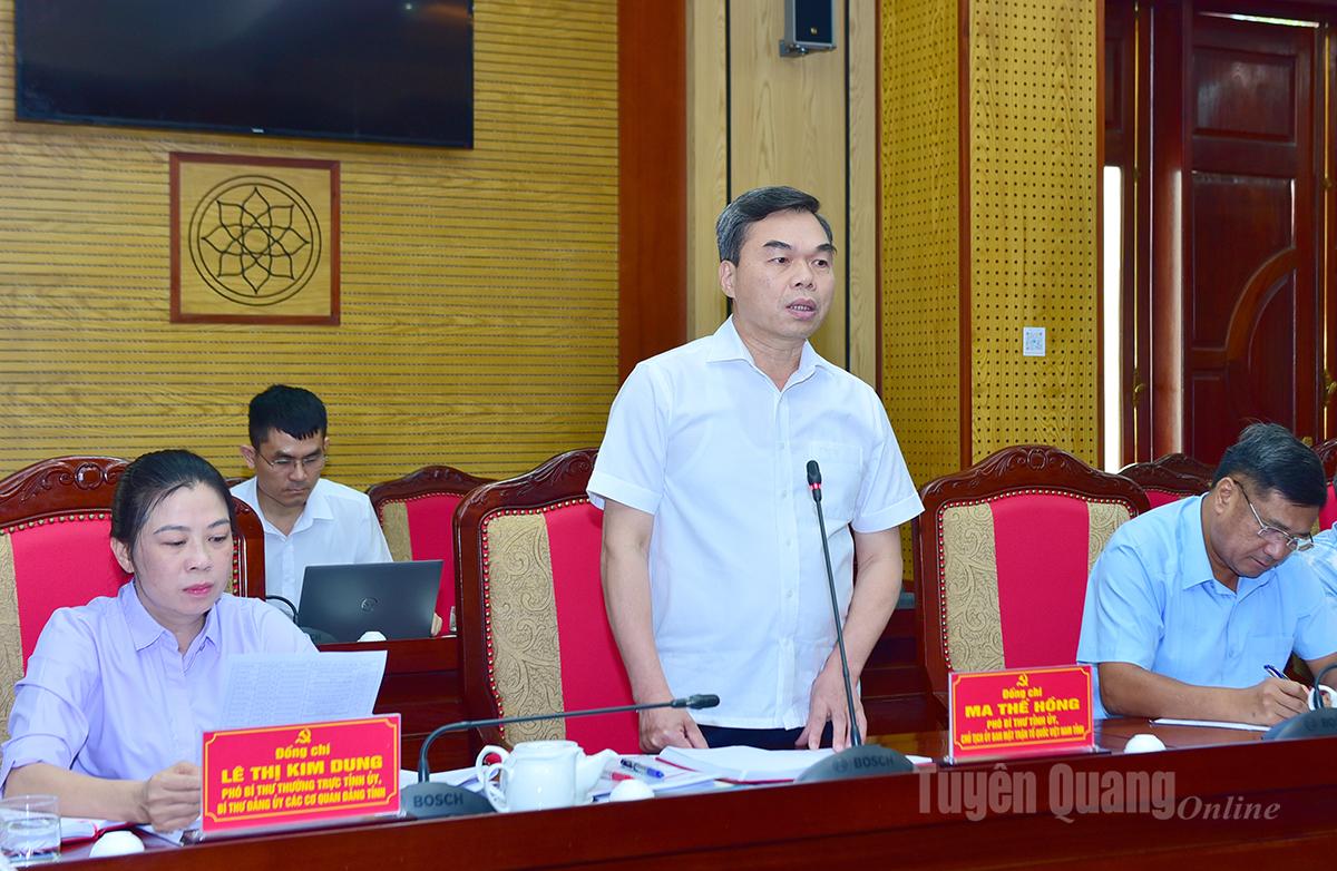 Đồng chí Ma Thế Hồng, Phó Bí thư Tỉnh ủy, Chủ tịch Ủy ban MTTQ tỉnh phát biểu thảo luận tại buổi làm việc.