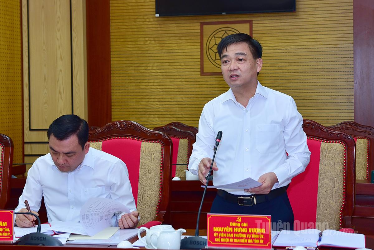 Đồng chí Chủ nhiệm UBKT Tỉnh uỷ Nguyễn Hưng Vượng báo cáo kết quả thực hiện nhiệm vụ kiểm tra, giám sát và thi hành kỷ luật đảng từ khi sáp nhập đến nay và phương hướng, nhiệm vụ trong thời gian tới.