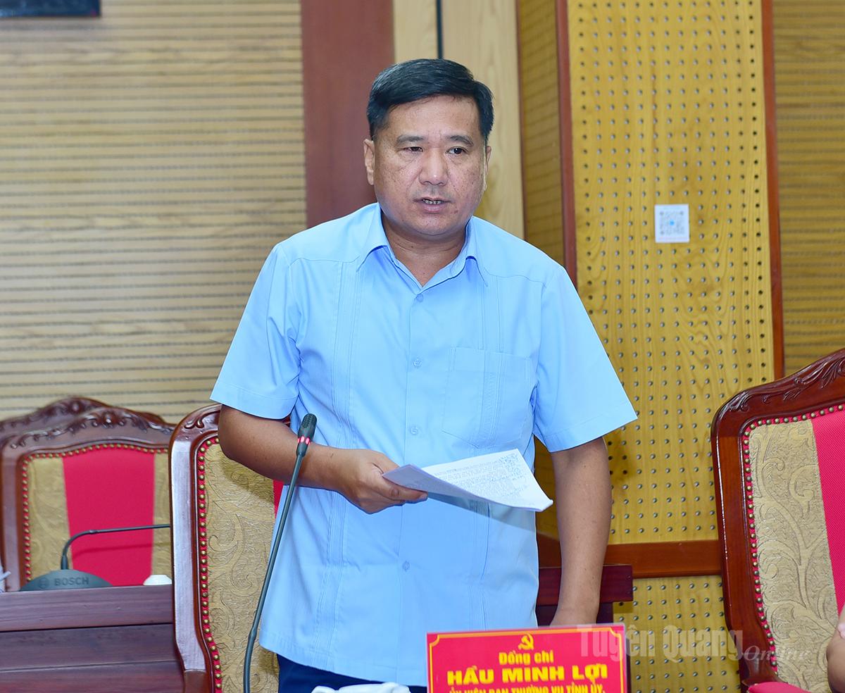 Đồng chí Phó Chủ tịch Thường trực HĐND tỉnh Hầu Minh Lợi phát biểu thảo luận tại buổi làm việc.