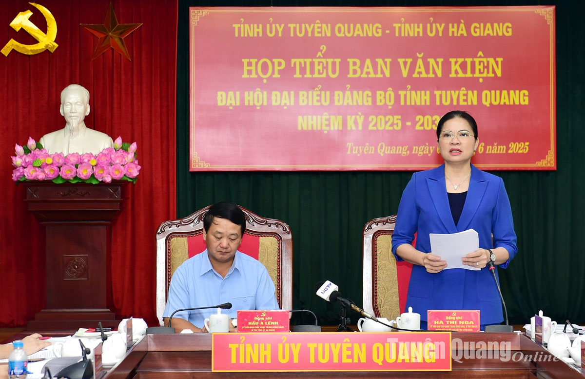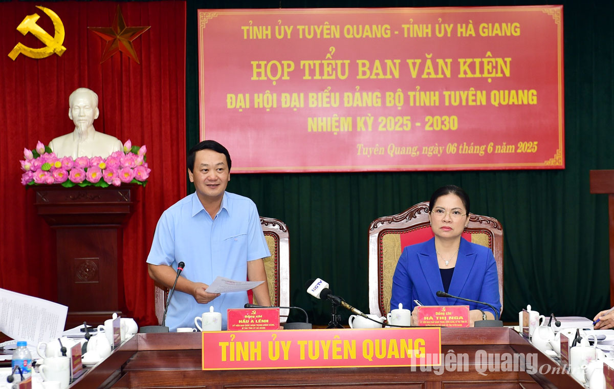Kết luận buổi làm việc, đồng chí Bí thư Tỉnh ủy Hà Giang Hầu A Lềnh yêu cầu thành viên tiểu ban văn kiện tiếp thu ý kiến các đại biểu, hoàn thiện dự thảo trước ngày 30-6. Đồng chí nhấn mạnh, Báo cáo chính trị được xây dựng bám sát quan điểm, chủ trương, bám sát các chỉ thị, nghị quyết của Trung ương, nhưng phải theo hướng hành động, bảo đảm tính khả thi. Đồng thời, cụ thể hoá kế hoạch hành động theo từng giai đoạn, thời điểm và nội dung trọng điểm. Đặc biệt, các mục tiêu, giải pháp phải căn cứ vào tình hình thực tiễn, phát huy được lợi thế và thế mạnh của địa phương trong giai đoạn mới, thể hiện quyết tâm chính trị đưa Tuyên Quang vững bước cùng cả nước trong kỷ nguyên vươn mình của dân tộc.