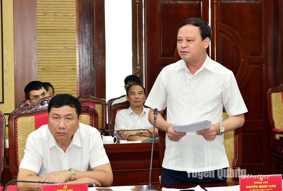 Đồng chí Phó Chủ tịch Thường trực UBND tỉnh Nguyễn Mạnh Tuấn phát biểu thảo luận.