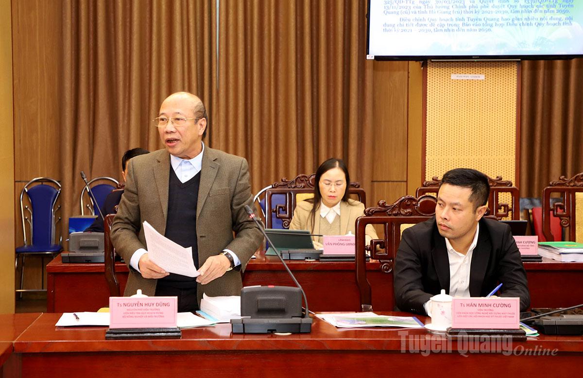 Giáo sư, Tiến sĩ Hoàng Văn Cường, Phó Chủ tịch Hội Khoa học kỹ thuật Việt Nam, nguyên Phó Hiệu trưởng Trường Đại học Kinh tế Quốc dân tham gia ý kiến vào Quy hoạch điều chỉnh tỉnh Tuyên Quang.