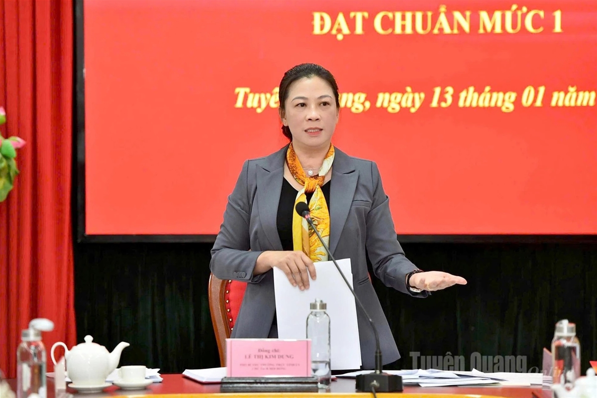Phát biểu kết luận hội nghị, Phó Bí thư Thường trực Tỉnh ủy, Chủ tịch Hội đồng đánh giá cấp tỉnh Lê Thị Kim Dung ghi nhận những nỗ lực, cố gắng của tập thể Trường Chính trị tỉnh trong quá trình xây dựng trường đạt chuẩn. Bên cạnh đó, đồng chí cũng đã chỉ ra những tiêu chí quan trọng mà nhà trường cần phải phấn đấu tiếp tục nâng cao chất lượng đào tạo, khắc phục những tồn tại hạn chế đối với một số tiêu chí thành phần. Đồng chí đề nghị lãnh đạo nhà trường cần linh hoạt sáng tạo, thay đổi tư duy, cách làm trong việc bố trí giảng viên tham gia học tập nâng cao trình độ chuyên môn; tích cực tham gia xây dựng các đề tài khoa học cấp tỉnh; ứng dụng khoa học kỹ thuật, đẩy mạnh chuyển đổi số; quan tâm đầu tư xây dựng cơ sở vật chất.
