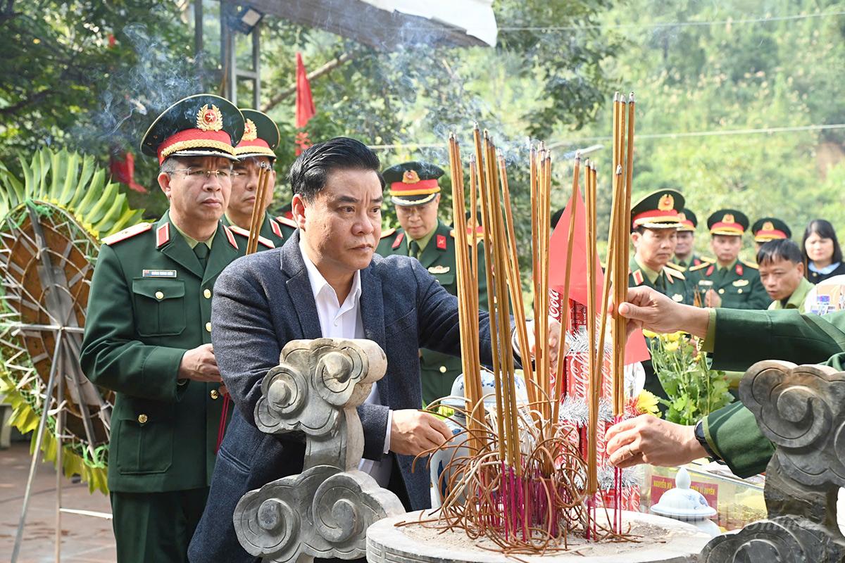 Phó Chủ tịch UBND tỉnh Hoàng Gia Long và Đoàn công tác dâng hương tại Đền thờ các Anh hùng Liệt sĩ Mặt trận Vị Xuyên tại điểm cao 468, thôn Nặm Ngặt, xã Thanh Thủy.
