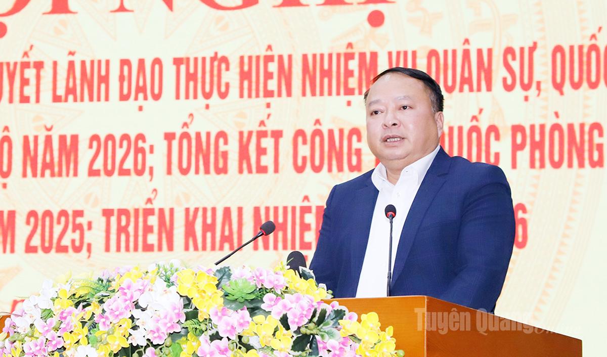 Bí thư Tỉnh ủy nhấn mạnh, từ nay đến quý I năm 2026 sẽ diễn ra nhiều sự kiện trọng đại của đất nước, các cấp ủy, tổ chức Đảng cần tập trung lãnh đạo, chỉ đạo thực hiện nhiệm vụ quân sự, quốc phòng chặt chẽ, nắm chắc tình hình, xử lý các tình huống, không để bị động bất ngờ.