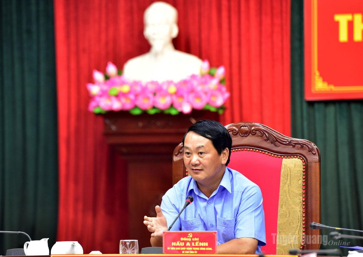 Đồng chí Bí thư Tỉnh ủy Hầu A Lềnh đề nghị tập trung các giải pháp tháo gỡ khó khăn, vướng mắc để thúc đẩy sản xuất, phát triển kinh tế theo kịch bản tăng trưởng đề ra, với mục tiêu 8,61% trong năm nay; phân tích rõ các yếu tố liên quan đến tăng trưởng từng khu vực để có giải pháp hoàn thành mục tiêu đặt ra.