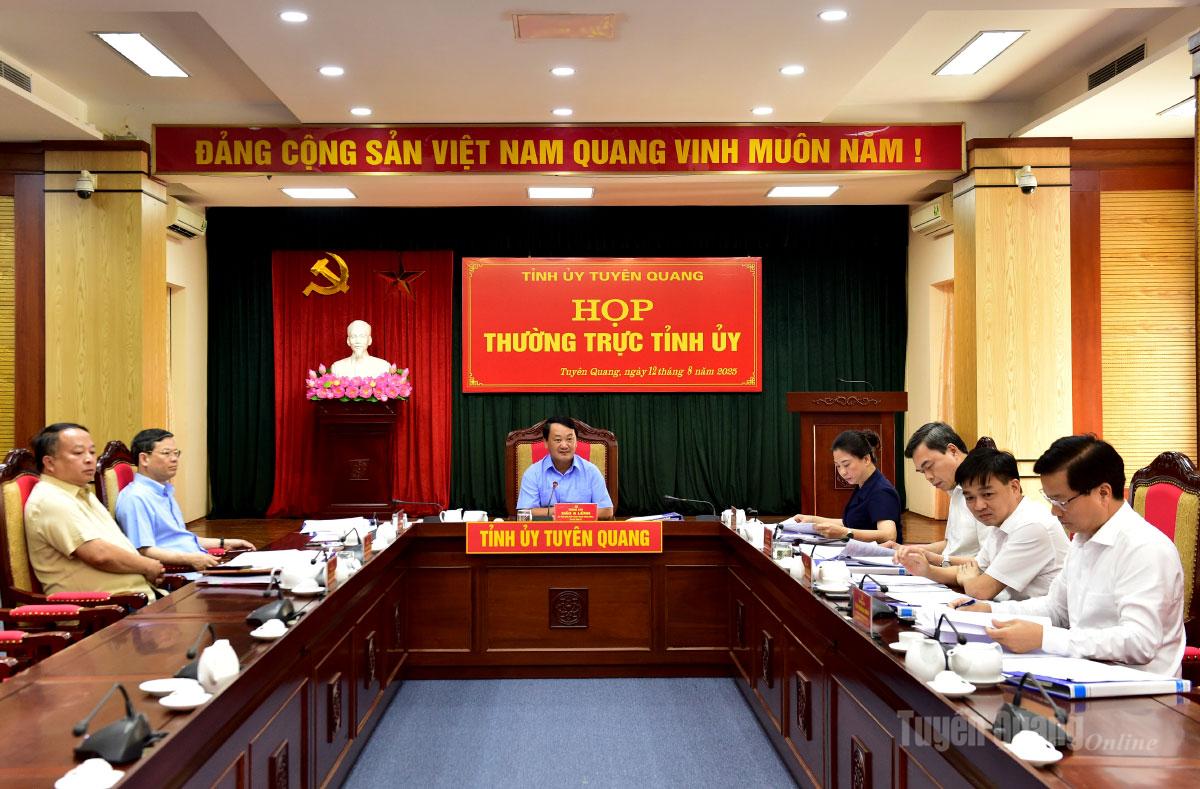 Thường trực Tỉnh ủy đã cho ý kiến vào tờ trình của Đảng ủy UBND tỉnh về dự thảo Kế hoạch thực hiện kịch bản tăng trưởng quý III, 9 tháng và cả năm 2025; các báo cáo của Đảng ủy UBND tỉnh về dự kiến kế hoạch đầu tư công trung hạn nguồn ngân sách nhà nước giai đoạn 2026-2030 tỉnh Tuyên Quang; dự kiến kế hoạch đầu tư công trung hạn nguồn ngân sách nhà nước năm 2026 tỉnh Tuyên Quang.