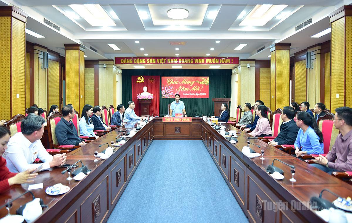 Tại buổi gặp mặt, lãnh đạo Văn phòng Tỉnh ủy đã báo cáo tình hình thực hiện nhiệm vụ trước, trong và sau Tết Nguyên đán Bính Ngọ 2026. Văn phòng đã chủ động tham mưu Thường trực, Ban Thường vụ Tỉnh ủy ban hành các văn bản chỉ đạo triển khai thực hiện nghiêm túc Chỉ thị số 55-CT/TW, ngày 22-12-2025 của Ban Bí thư về tổ chức Tết Bính Ngọ năm 2026; xây dựng kế hoạch, lịch trực Tết, bảo đảm thông tin thông suốt 24/24 giờ.