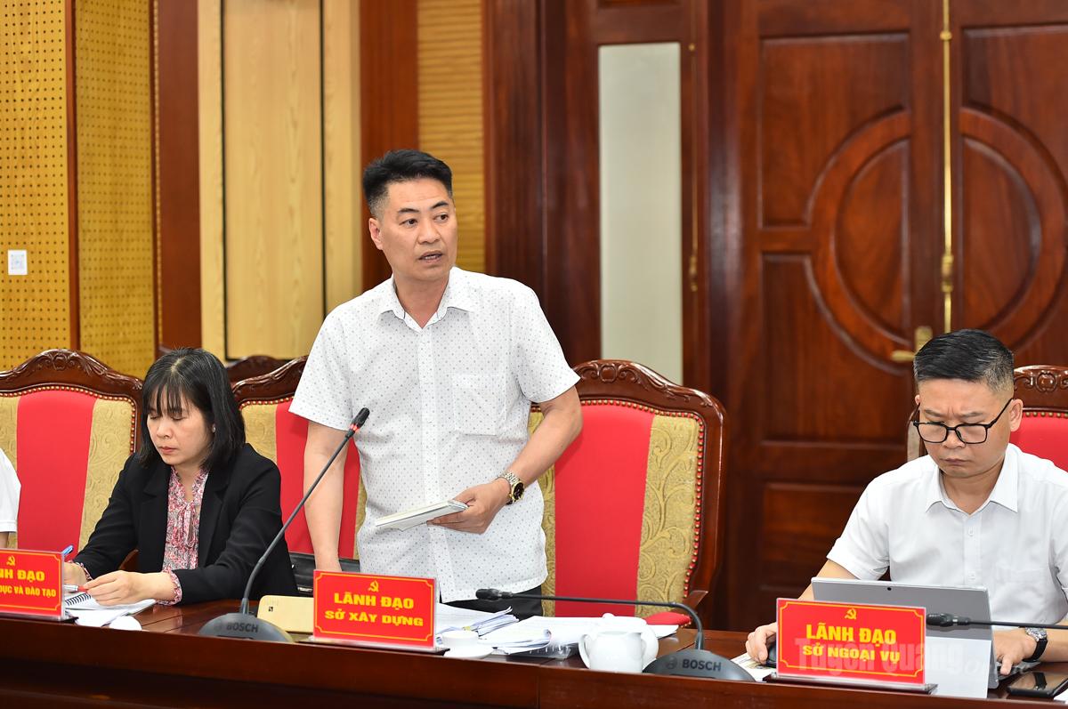 Đồng chí Lê Thanh Sơn, Giám đốc Sở Xây dựng phát biểu tại cuộc họp.