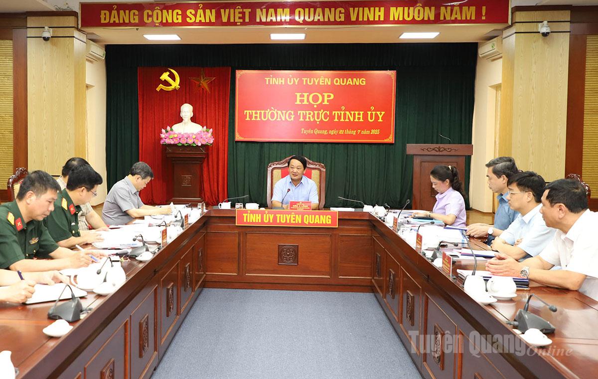 Sau khi nghe lãnh đạo Đảng ủy Quân sự tỉnh trình bày dự thảo các văn kiện, các đồng chí Thường trực Tỉnh ủy đã có nhiều ý kiến góp ý vào các dự thảo Văn kiện trình Đại hội đại biểu Đảng bộ Quân sự tỉnh Tuyên Quang nhiệm kỳ 2025-2030.
