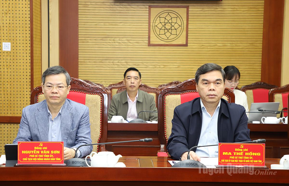Dự cuộc họp có các đồng chí: Nguyễn Văn Sơn, Phó Bí thư Tỉnh ủy, Chủ tịch HĐND tỉnh; Phan Huy Ngọc, Phó Bí thư Tỉnh ủy, Chủ tịch UBND tỉnh; Ma Thế Hồng, Phó Bí thư Tỉnh ủy, Chủ tịch Ủy ban MTTQ tỉnh; các đồng chí Ủy viên Ban Thường vụ Tỉnh ủy; lãnh đạo các sở, ban, ngành; các xã, phường triển khai các dự án trọng điểm trên địa bàn.