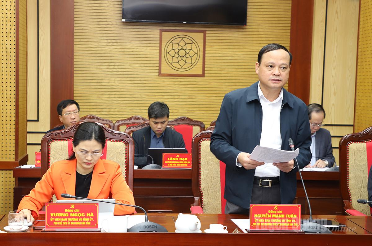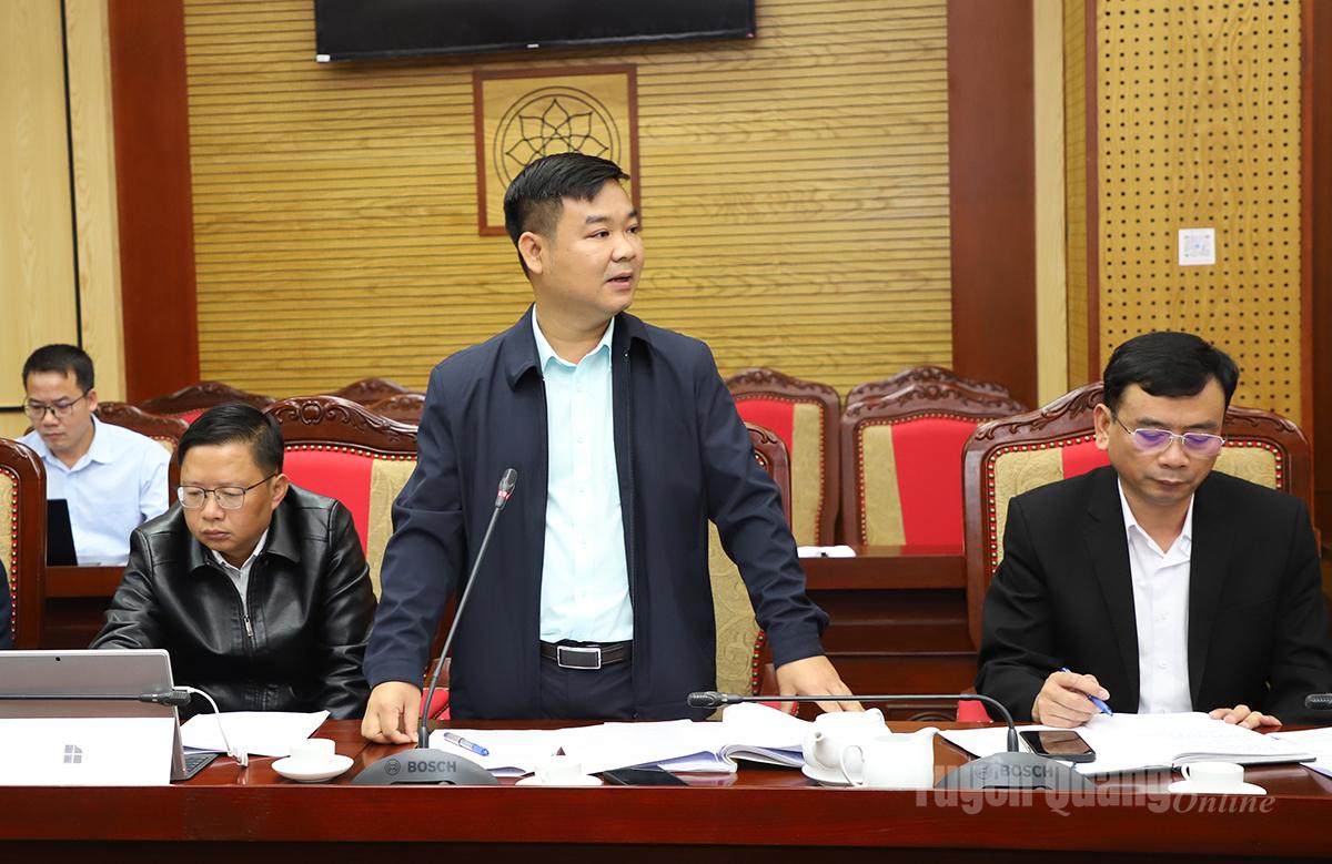 Phó Chủ tịch Thường trực UBND tỉnh Nguyễn Mạnh Tuấn báo cáo tiến độ các dự án tại phiên họp.