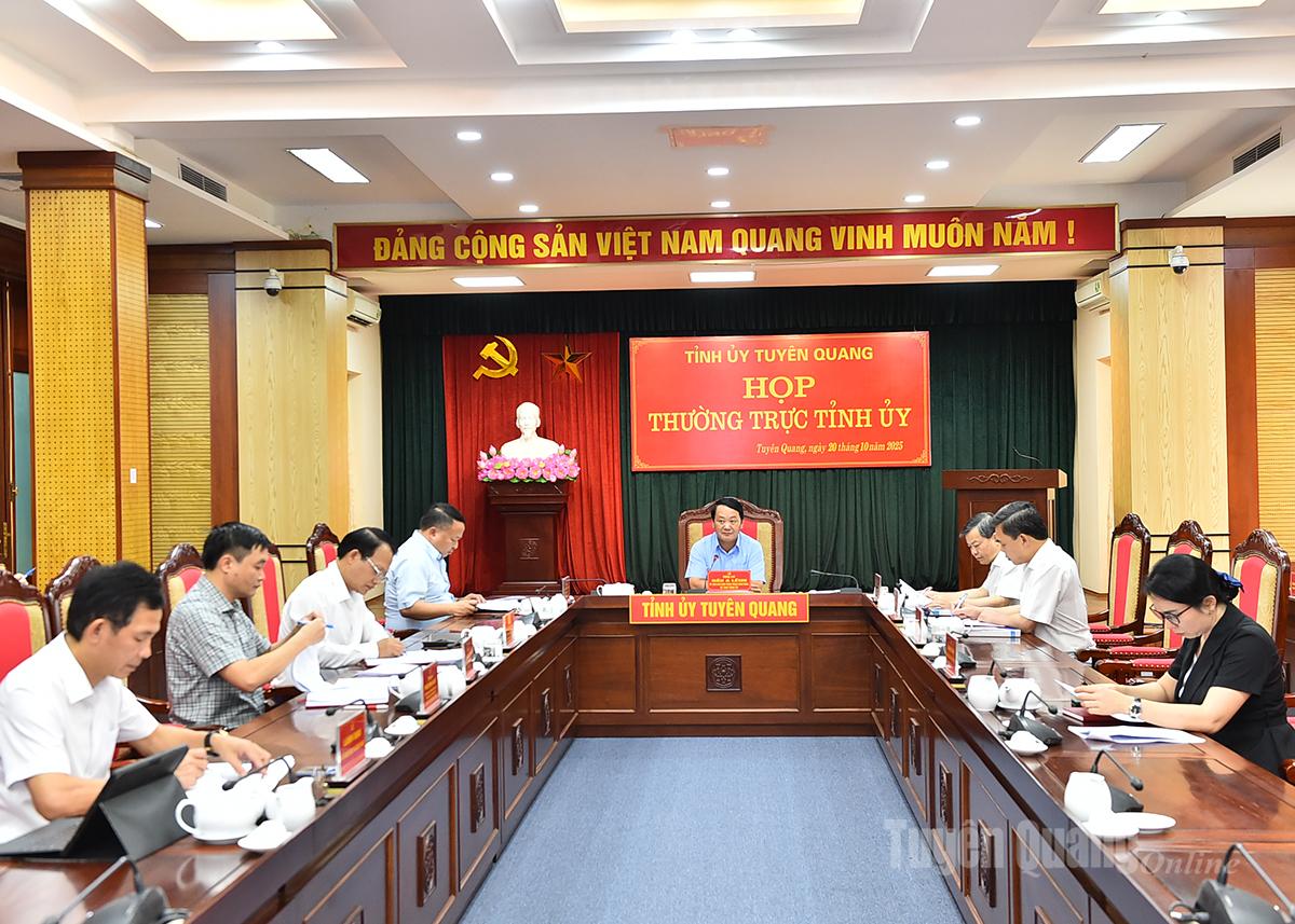 Thường trực Tỉnh ủy cũng cho ý kiến vào các Tờ trình của Đảng ủy UBND tỉnh gồm: Xin chủ trương điều chỉnh giảm kế hoạch đầu tư công vốn ngân sách địa phương từ nguồn tiết kiệm chi ngân sách tỉnh, nguồn thu tiền sử dụng đất bố trí cho dự án Cao tốc Tuyên Quang - Hà Giang (giai đoạn 1), đoạn qua tỉnh Hà Giang (trước sắp xếp) và Phương án phân bổ chi tiết nguồn tiết kiệm chi ngân sách cấp tỉnh năm 2025; Chủ trương giao bổ sung dự toán chi đầu tư phát triển và kế hoạch đầu tư công vốn ngân sách địa phương năm 2025 từ nguồn tăng thu, tiết kiệm chi ngân sách cấp tỉnh năm 2024; Chủ trương một số nội dung trong kế hoạch triển khai thực hiện Nghị quyết số 298/NQ-CP ngày 26/9/2025 của Chính phủ ban hành Kế hoạch hành động của Chính phủ thực hiện Thông báo số 81-TB/TW ngày 18/7/2025 của Bộ Chính trị về chủ trương đầu tư xây dựng trường học cho các xã biên giới; Dự thảo Nghị quyết phân bổ, giao dự toán chi thường xuyên thực hiện Chương trình mục tiêu quốc gia giảm nghèo bền vững năm 2025; Dự thảo Nghị quyết của HĐND tỉnh Quy định mức trợ cấp một lần đối với người làm việc ngoài chỉ tiêu biên chế tại các Hội do Đảng, Nhà nước giao nhiệm vụ ở cấp tỉnh hoặc ở cấp huyện trước thời điểm ngày 01/7/2025 nghỉ việc ngay do thực hiện mô hình tổ chức chính quyền địa phương 2 cấp trên địa bàn tỉnh Tuyên Quang.