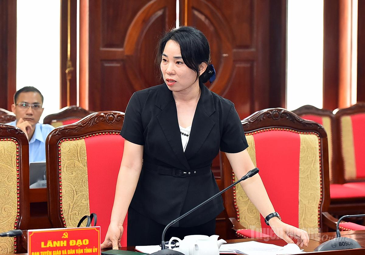 Đồng chí Hoàng Thị Hằng, Phó Trưởng ban Tuyên giáo và Dân vận Tỉnh ủy báo cáo tờ trình tại phiên họp.
