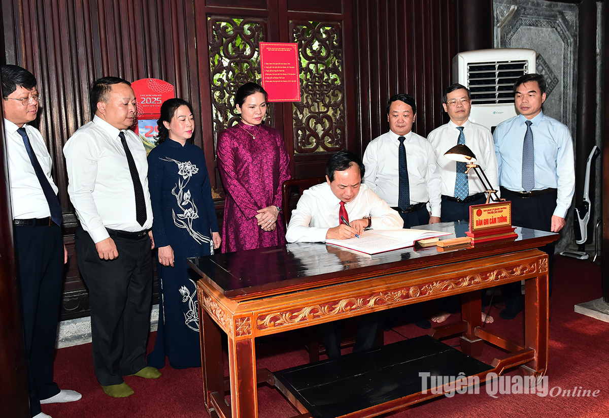 Thượng tướng Trịnh Văn Quyết, Bí thư Trung ương Đảng, Chủ nhiệm Tổng cục Chính trị Quân đội nhân dân Việt Nam cùng các đồng chí lãnh đạo tỉnh Tuyên Quang và Hà Giang dâng hương tại Đền thờ Chủ tịch Hồ Chí Minh.