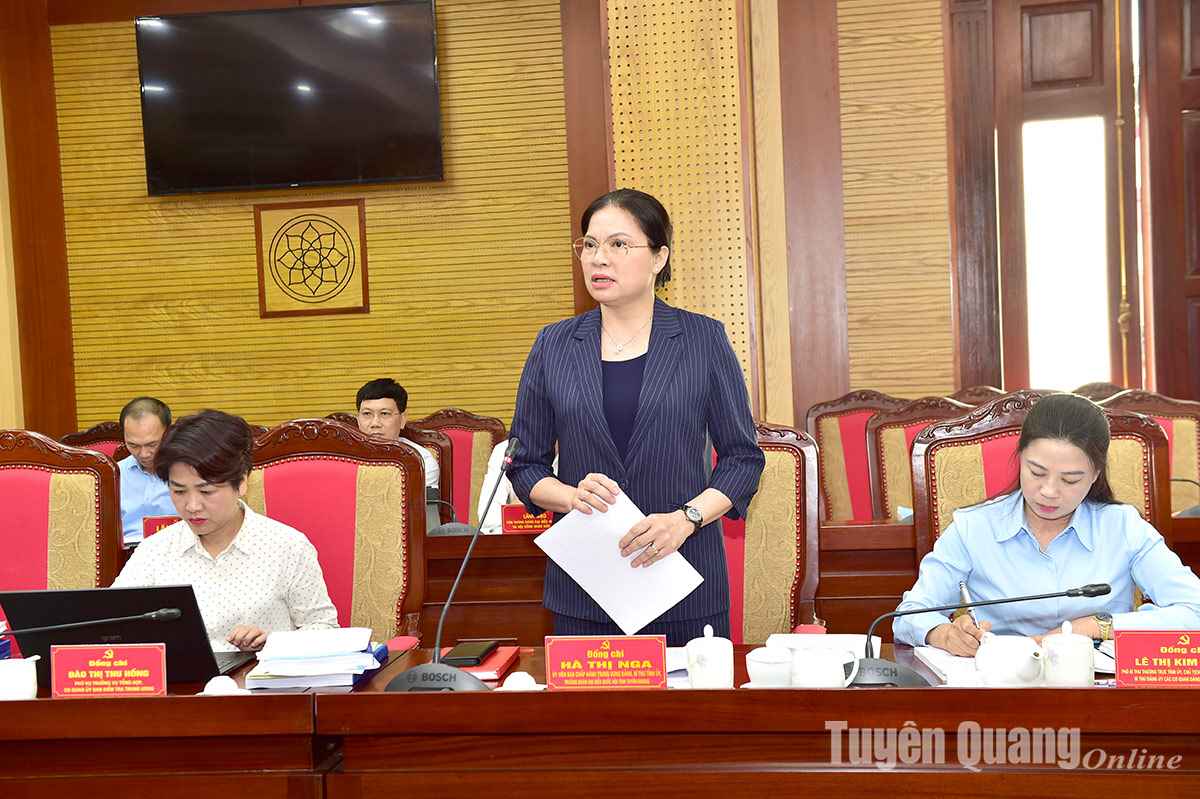 Đồng chí Bí thư Tỉnh ủy Tuyên Quang Hà Thị Nga phát biểu tại buổi làm việc.