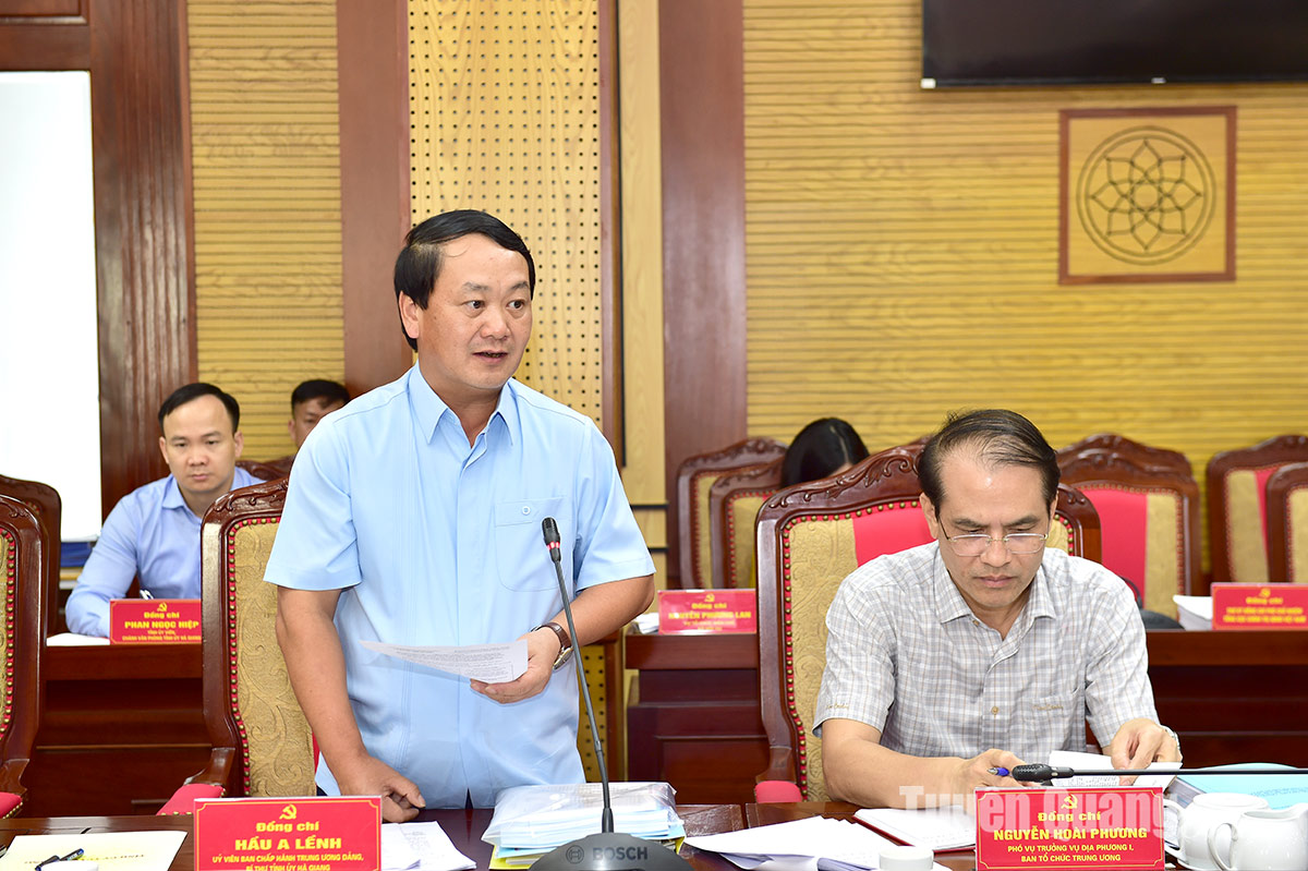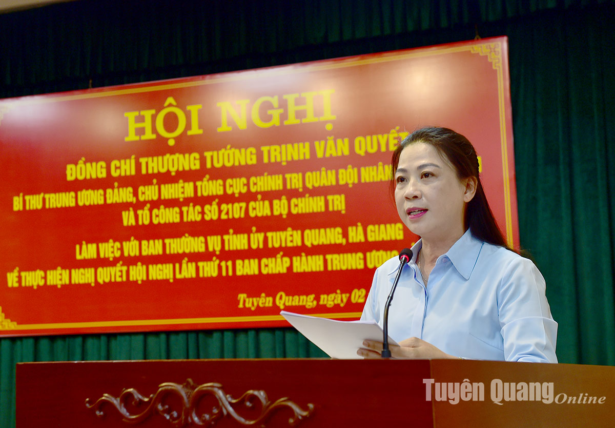 Tại buổi làm việc tỉnh Tuyên Quang và tỉnh Hà Giang đã báo cáo với Đoàn công tác về kết quả triển khai và tổ chức thực hiện Nghị quyết Hội nghị lần thứ 11 Ban Chấp hành Trung ương Đảng khóa XIII của mỗi tỉnh. Theo đó, tại Tuyên Quang, quán triệt và thực hiện nghiêm các kết luận, nghị quyết chỉ đạo, định hướng của Trung ương, thời gian qua tỉnh Tuyên Quang đã chủ động, linh hoạt và có nhiều giải pháp hiệu quả đảm bảo hoàn thành các nhiệm vụ, giải pháp sắp xếp tổ chức bộ máy theo chủ trương, đảm bảo chất lượng, tiến độ, trọng tâm là xây dựng Đề án hợp nhất hai tỉnh Tuyên Quang và Hà Giang, Đề án sắp xếp đơn vị hành chính cấp xã với tinh thần quyết tâm cao, cùng sự đồng thuận của cán bộ, đảng viên và Nhân dân trong tỉnh.