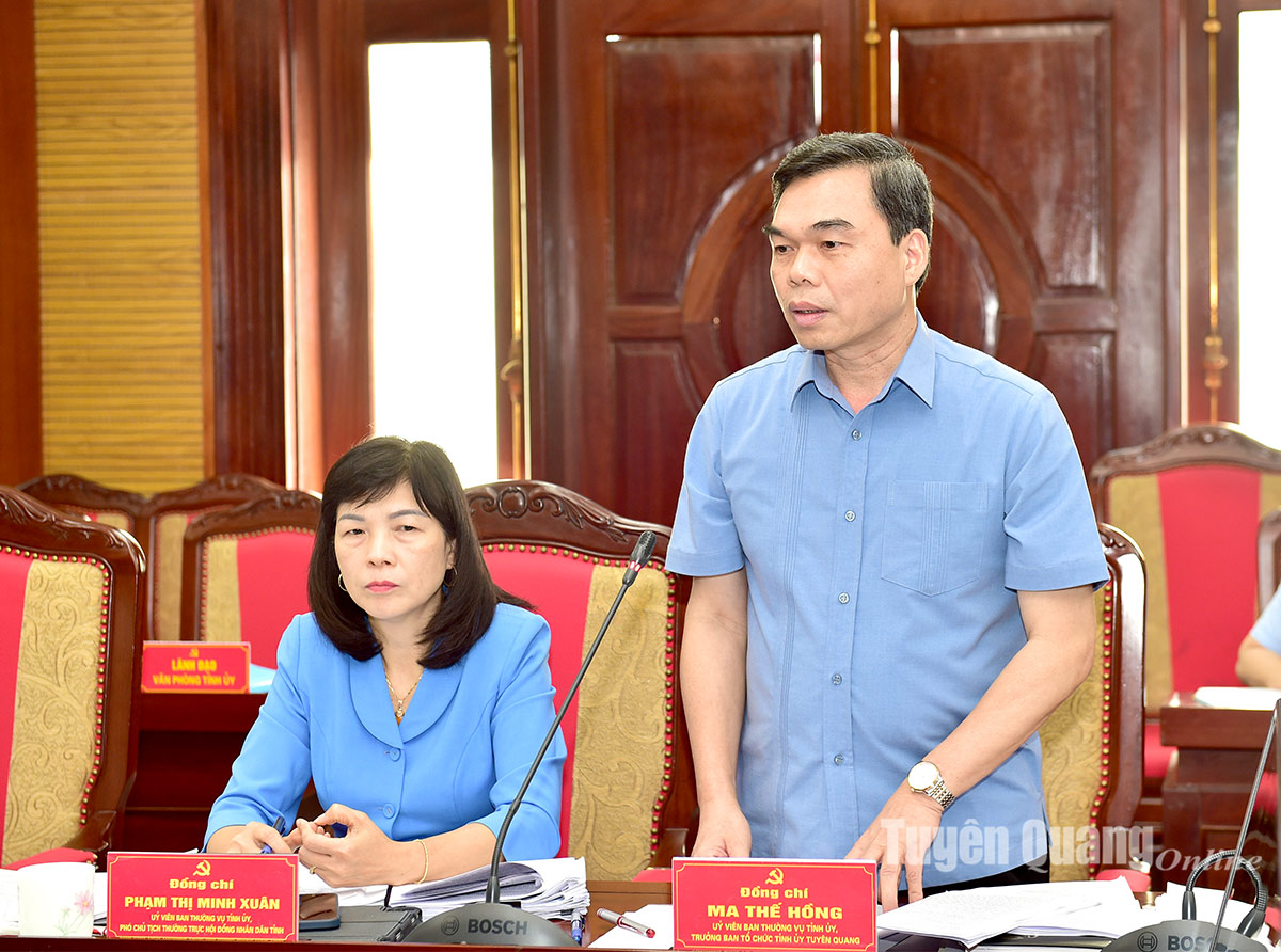 Đồng chí Trưởng Ban Tổ chức Tỉnh ủy Ma Thế Hồng phát biểu thảo luận.