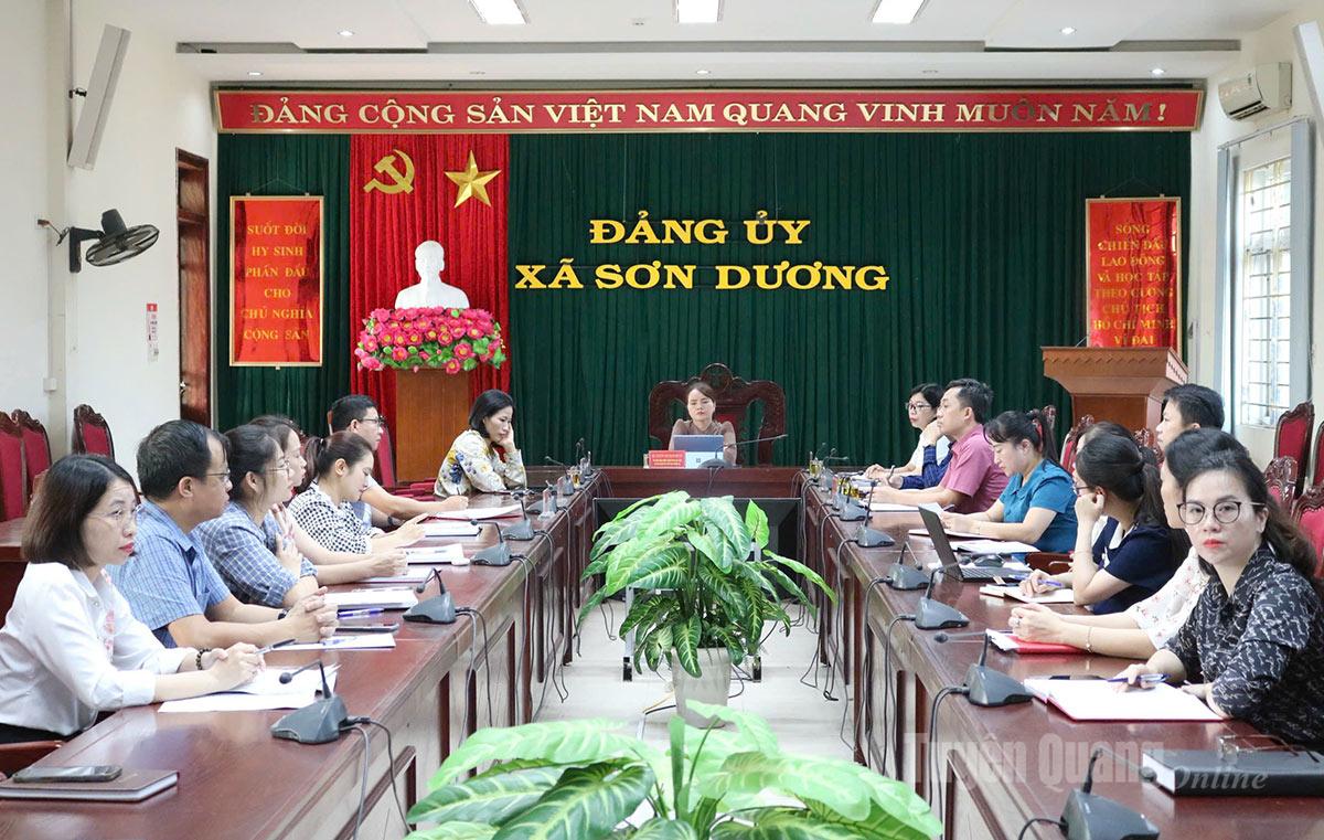 Đại biểu dự hội nghị tại điểm cầu Đảng ủy xã Sơn Dương.