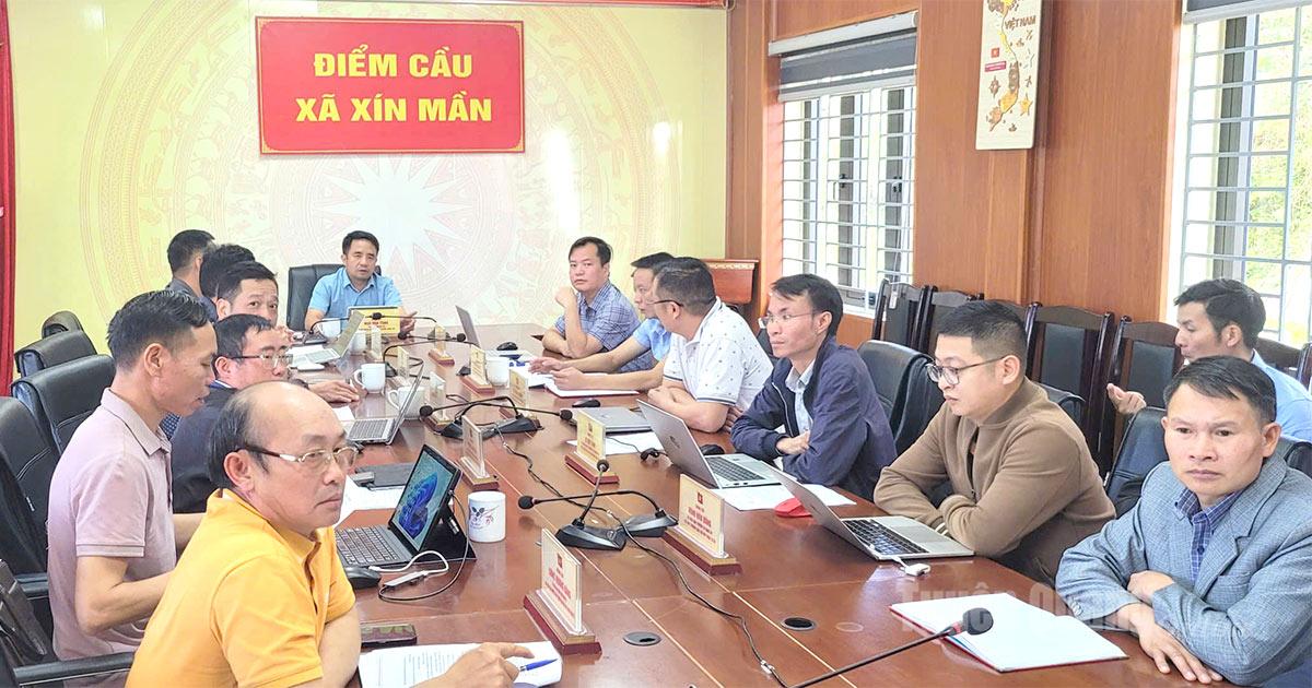 Các đại biểu dự hội nghị tại điểm cầu Đảng ủy xã Xín Mần.
