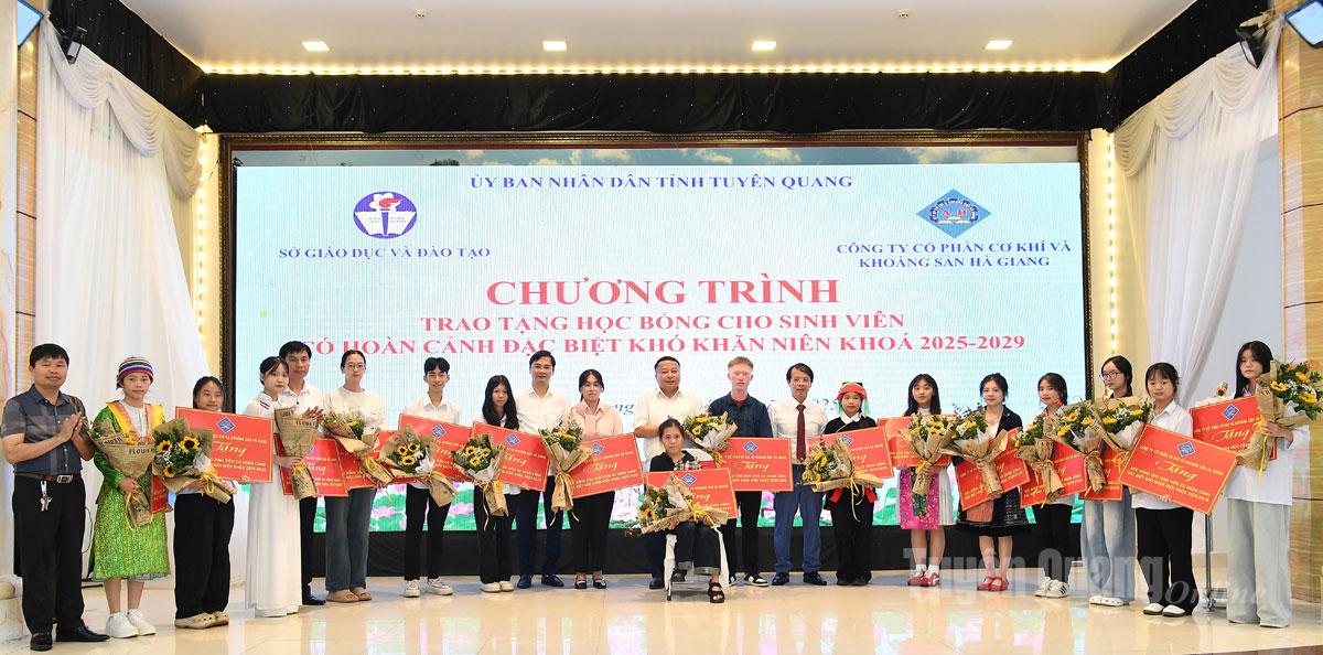 Tại Chương trình, Công ty cổ phần Cơ khí và Khoáng sản Hà Giang đã đọc quyết định trao 27 suất học bổng cho 27 tân sinh viên có hoàn cảnh đặc biệt khó khăn trên địa bàn tỉnh trúng tuyển đại học năm 2025 với tổng số tiền trên 2,5 tỉ đồng. Các sinh viên sẽ được cấp học bổng theo năm học cho đến khi học xong đại học.
