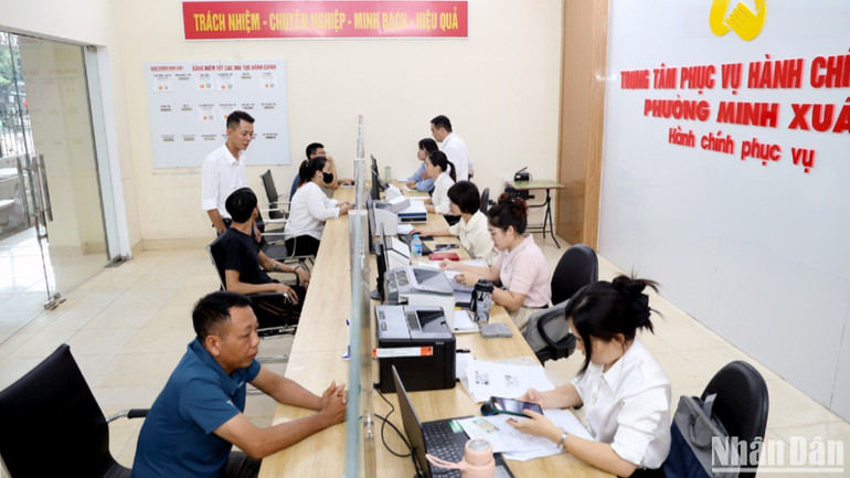 Người dân đến làm thủ tục hành chính tại Trung tâm phục vụ hành chính công phường Minh Xuân.