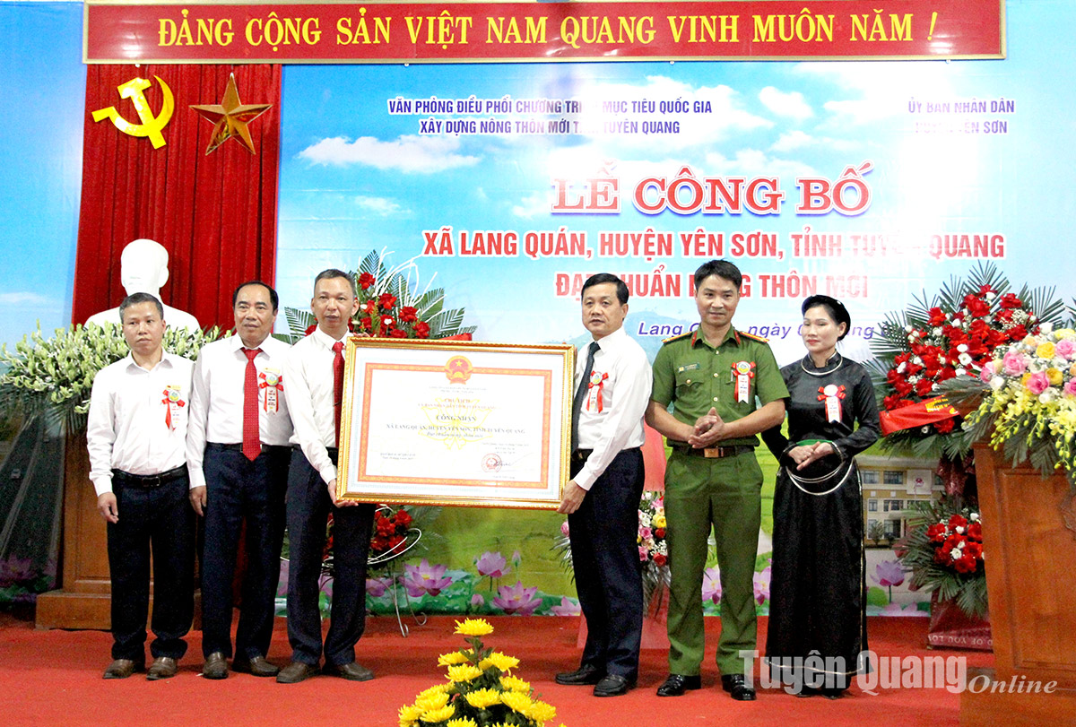 Phát biểu tại buổi lễ, đồng chí Phó Chủ tịch UBND tỉnh Nguyễn Thế Giang đã ghi nhận, biểu dương những thành tích xã Lang Quán đạt được trong phong trào xây dựng nông thôn mới. Đồng chí đề nghị Đảng bộ, chính quyền và nhân dân các dân tộc trong xã tiếp tục phát huy tinh thần đoàn kết, giữ vững các tiêu chí nông thôn mới đã đạt được.