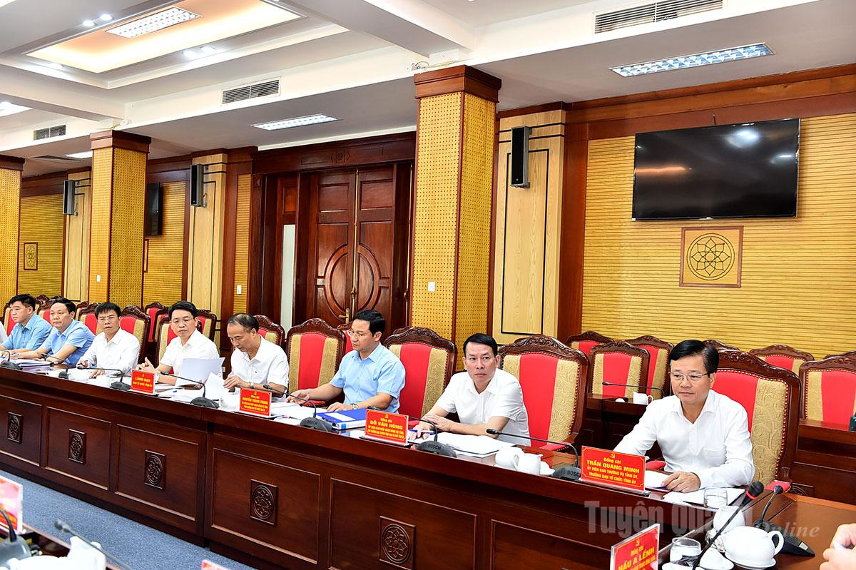 Các đồng chí Thường trực Tỉnh ủy và đại biểu dự buổi làm việc.