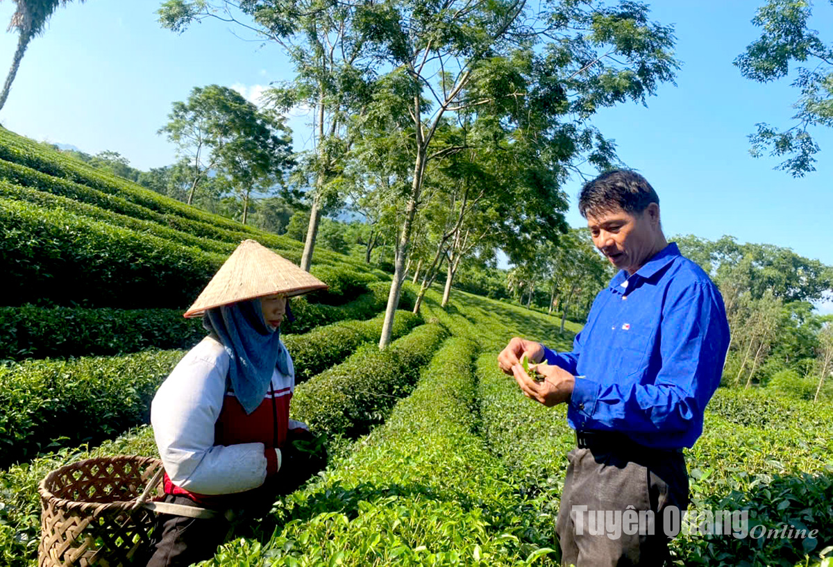 Ông Vương Văn Thọ, Bí thư Chi bộ, Trưởng thôn Giếng Đõ, xã Mỹ Bằng (Yên Sơn) vận động Nhân dân thâm canh cây chè. Ảnh minh họa.
